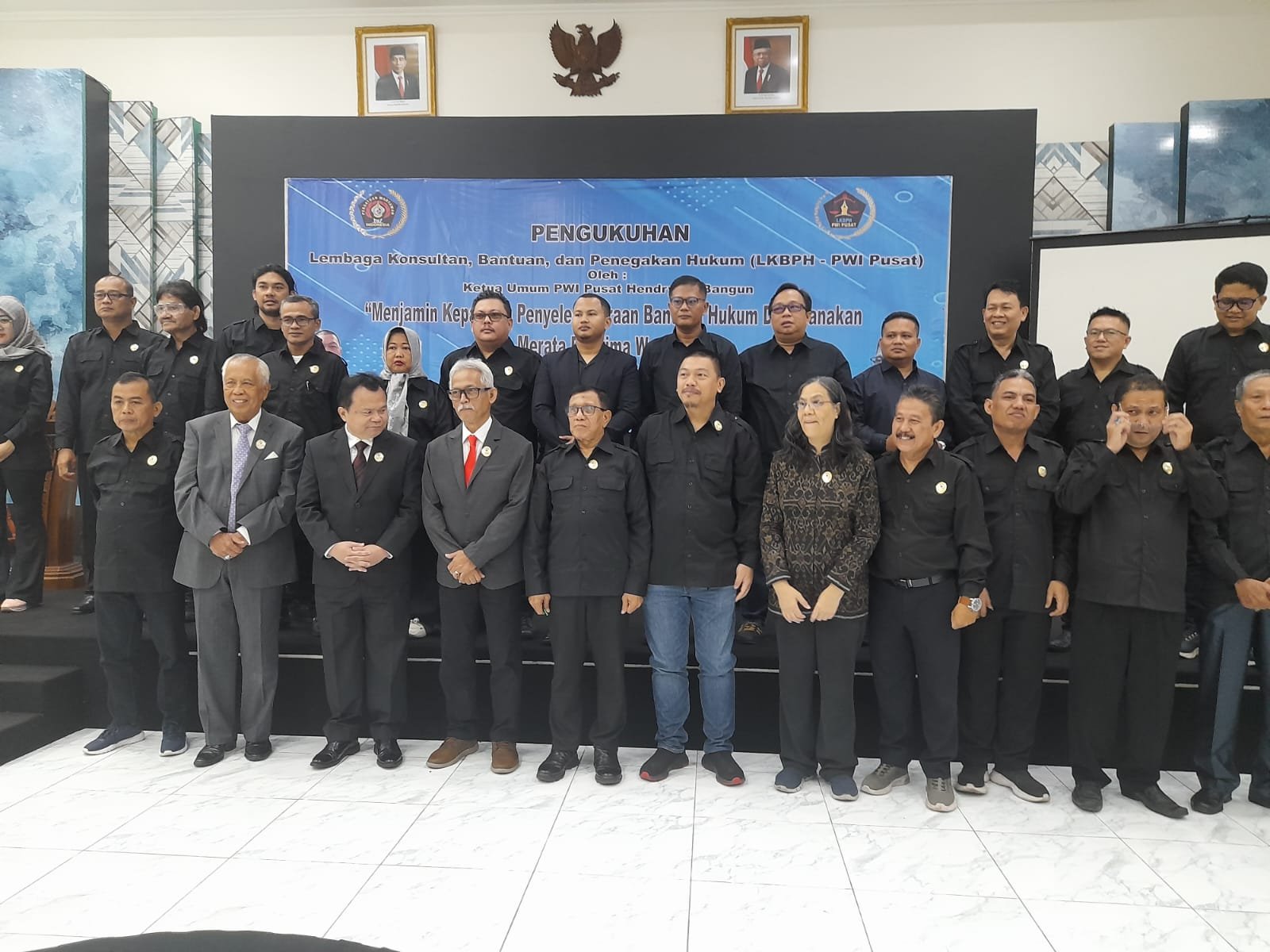 Ketua Umum PWI Pusat Hendry Ch Bangun resmi melantik atau mengukuhkan Lembaga Konsultan Bantuan dan Penegakan Hukum Persatuan Wartawan Indonesia (LKBPH PWI) Pusat di Hall Gedung Pers, Kebon Sirih, Jakarta Pusat, Jumat 13 September 2024 pagi.