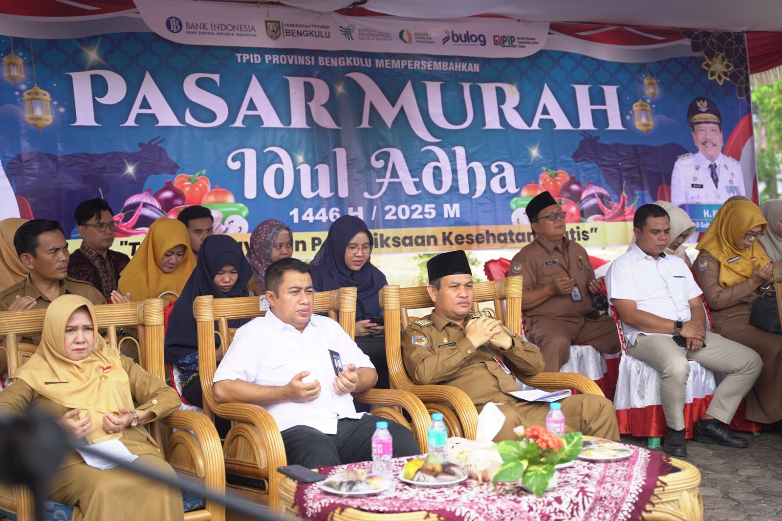 Kegiatan ini merupakan kolaborasi pemerintah daerah dengan Disperindag, Dinas Ketahanan Pangan, Dinas Peternakan dan Kesehatan Hewan, Perum Bulog, Baznas, Satgas Pangan, Polresta Bengkulu dan Satpol PP Provinsi Bengkulu.*