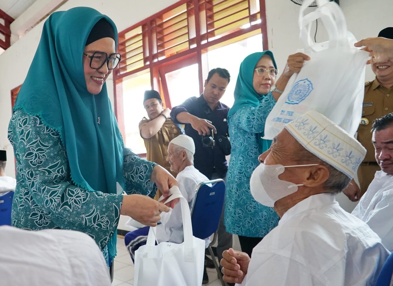 nfosumetara.com-Berbagi kebahagiaan di Bulan Suci Ramadan bersama kakek dan nenek Panti Sosial Tresna Werdha Bengkulu, Ketua TP PKK Provinsi Bengkulu Derta Rohidin sampaikan beberapa bantuan paket sembako, baju lebaran, paket Al-Qur’an, dan uang tunai.